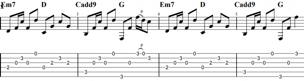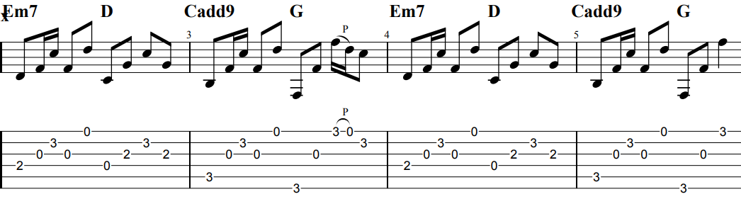 まずチューニングが半音下げにしましょう。演奏はピックを使用したアルペジオとなっています。4つのコードが出てきますが基本のコードを展開させたコードフォームでフレージングをしていきます。ピッキングは16分音符を基準にしたオルタネイトピッキングで弾くとリズムがとりやすいと思います。弦移動が大きい箇所もありますので右手の移動も加えながら演奏するのがポイントになります。