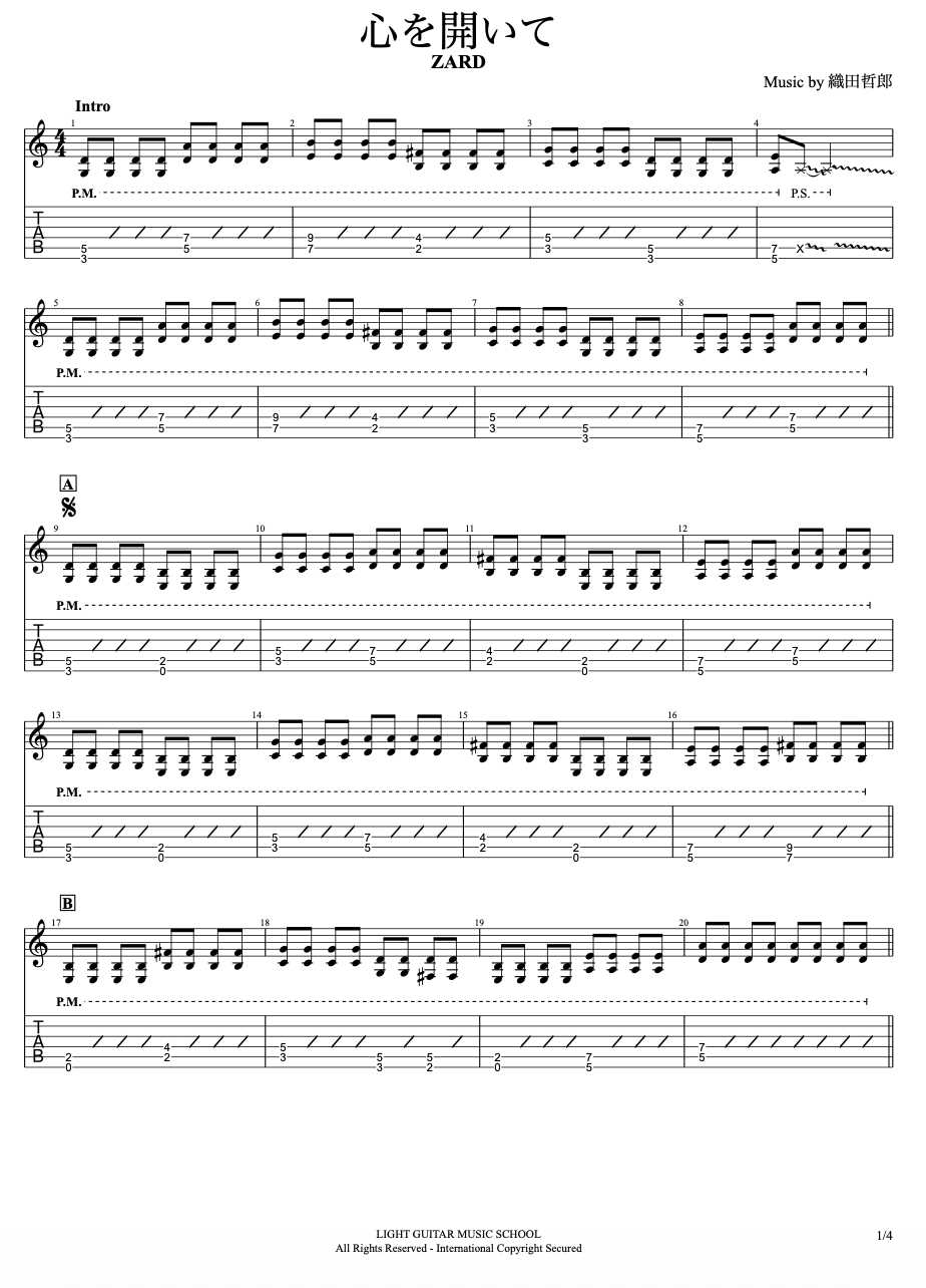心を開いて/ZARDのフルコーラスアコースティックギターTAB譜はこちらから