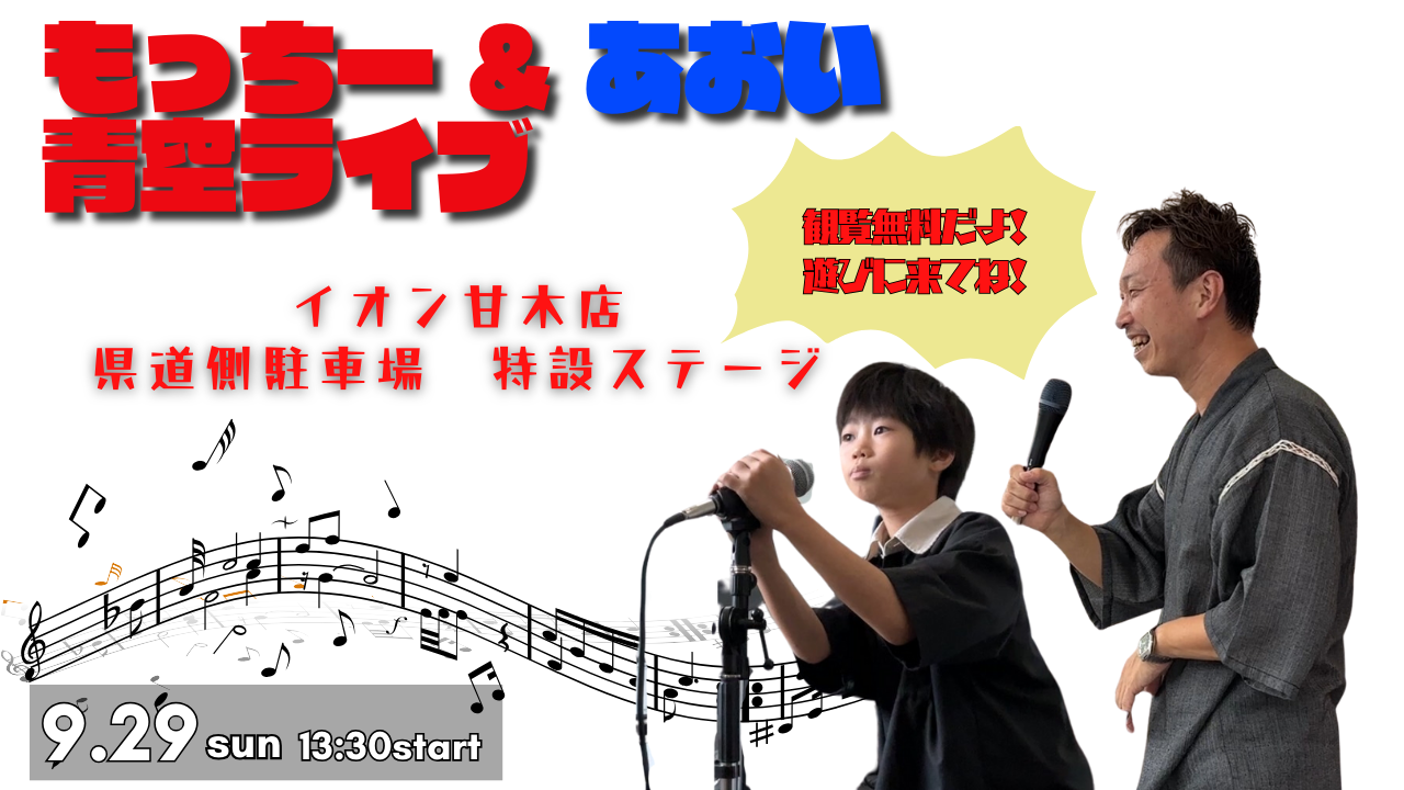 9/29(日)イオン甘木店にて行われた青空野外ライブに生徒のあおい君が出演しました!