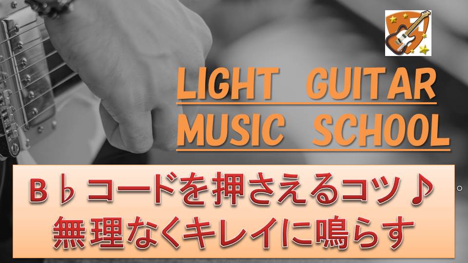 5弦ルートでのバレーコード B♭の押さえ方を解説しています。 これも、押さえるポイントを知っていれば必ず弾けるようになります! 5弦ルートの場合は薬指でのセーハがポイントです。 About The Author福岡LGMS音楽教室【LIGHT GUITAR MUSIC SCHOOL】ギター講師松尾領一郎これまで、多くのバンド活動・サポート活動・作詞・作曲・レコーディング・メジャー流通のアーティストへの楽曲提供・演奏活動・CM曲・プロモーションを行ってきました。福岡LGMS音楽教室【LIGHT GUITAR MUSIC SCHOOL】Follow :Recent Articles Of This Author2025年12月2日お知らせLIVEHOUSE SHOWCACE vol.2でした!2025年11月29日(土)2025年11月20日あの名曲のギターフレーズを弾こう!SPARKギターTAB譜・コード/THE YELLOW MONKEY2025年11月19日あの名曲のギターフレーズを弾こう!主人公ギターTAB譜・コード/SUPER BEAVER2025年11月7日あの名曲のギターフレーズを弾こう!今夜のクリスマス ギターTAB譜/川崎鷹也【イントロ】2025年11月2日お知らせLiveHouse Showcase Vol.2開催!2025年10月29日あの名曲のギターフレーズを弾こう!心を開いて/ZARDギターTAB譜松尾領一郎の記事一覧