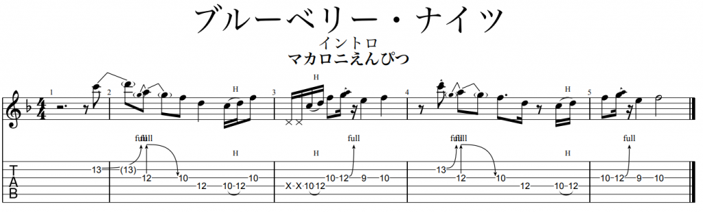 マカロニえんぴつさんの「ブルーベリーナイツ」のイントロのギターフレーズを解説しています。