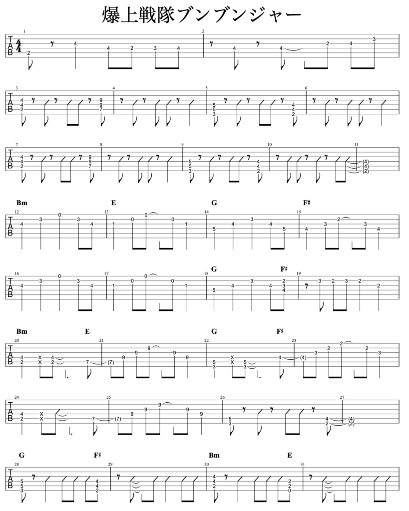爆上戦隊ブンブンジャーOPギターTAB譜