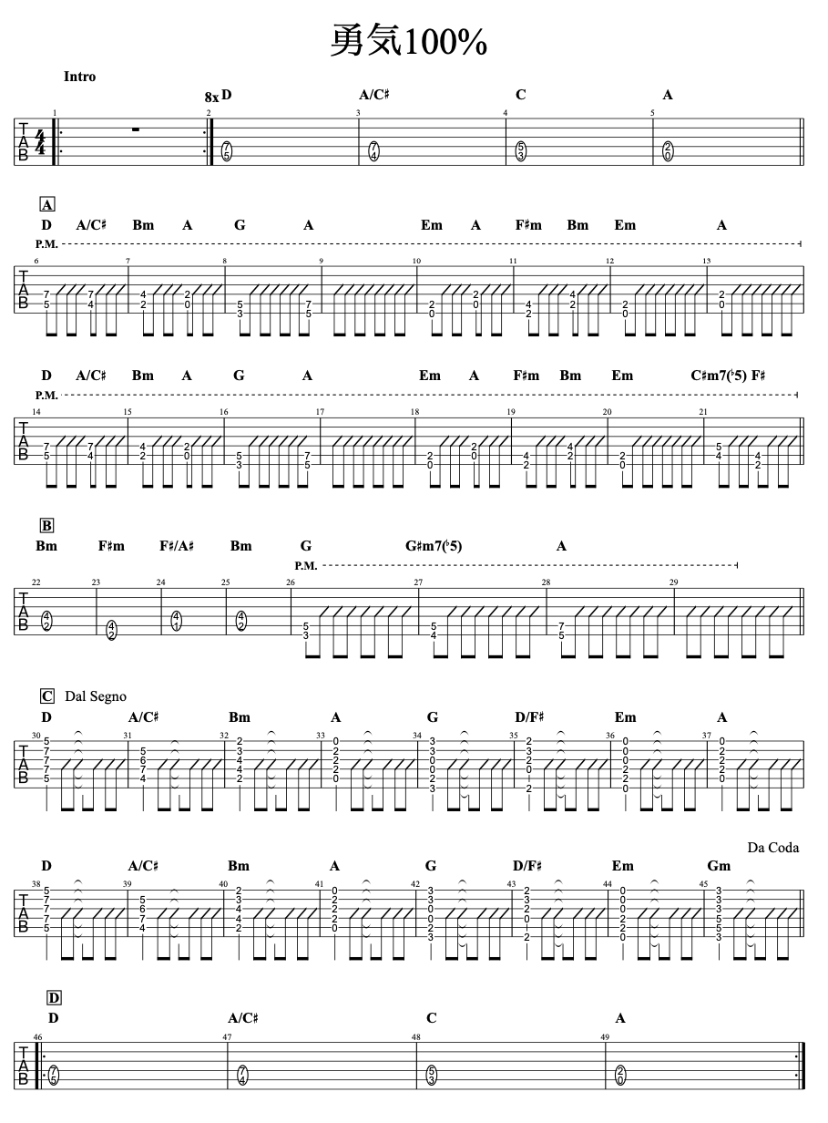 勇気100%/光GENJのフルコーラスギターTAB譜はこちらから