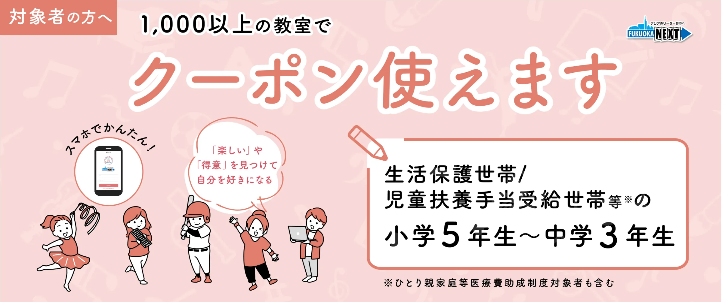 年額12万円分の電子クーポンが交付され、文化・スポーツ教室や学習塾などの習い事に活用できます。
