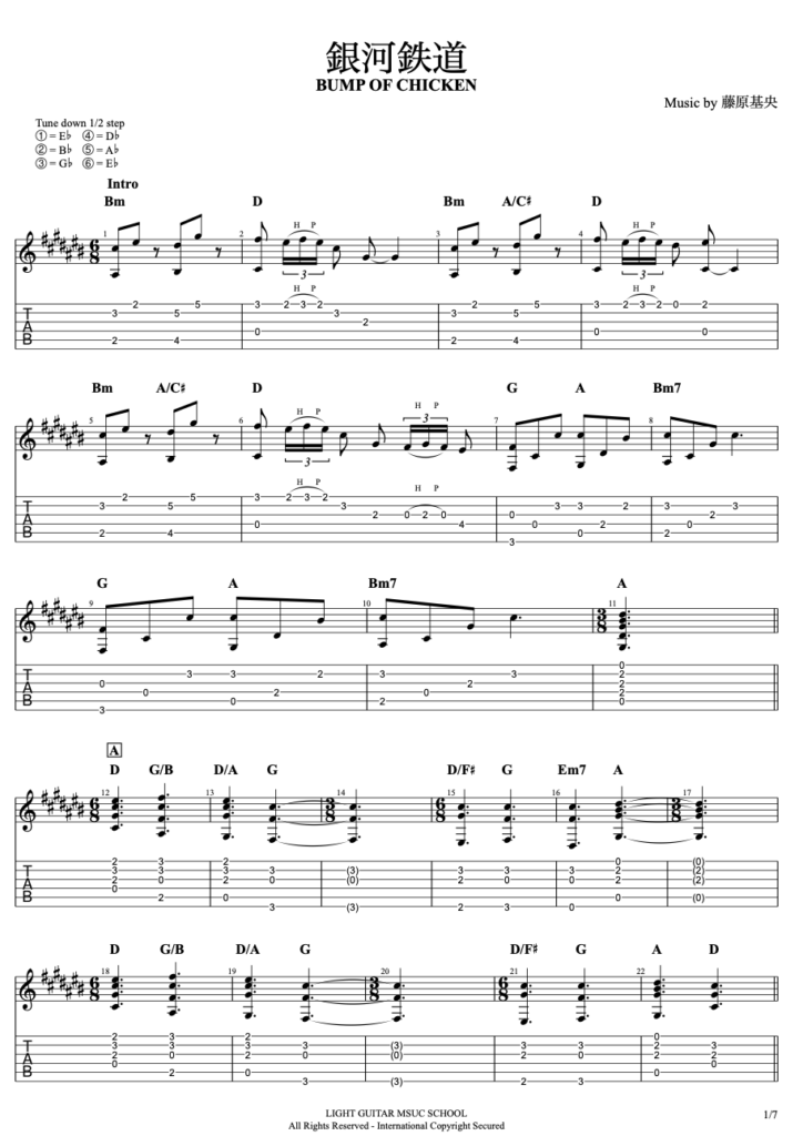 銀河鉄道/BUMP OF CHICKENのフルコーラスギターTAB譜はこちらから