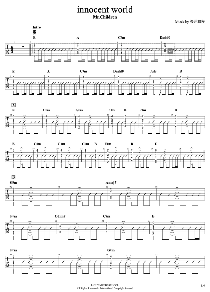 innocent worldギターTAB譜・コード・歌詞/Mr.Children