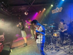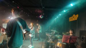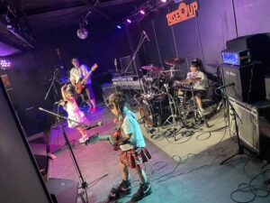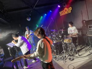 これまでの発表会と異なり、今回は生徒同士でバンドを結成し、一丸となってライブハウスでの本番ライブに挑戦するという新たな試みでした。そのため、各バンドにはバンド名もつけてもらい、事前にしっかりと練習を積んで本番に臨みました。ライブでは、各バンドが自らのペースで進行し、持ち時間を使い切ってパフォーマンスを披露。まさに、バンドメンバー一人ひとりの成長を感じる瞬間でした。