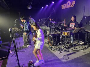 今回のイベントは、久留米にある「Rise Up」というライブハウスで開催され、まさにライブならではの音圧に包まれた中での演奏が行われました。ホールの音響とは一味違い、ライブハウスならではの迫力と臨場感に包まれて、出演した生徒たちはこれまでとは違った表情で演奏し、まさに刺激的な時間が流れました。
