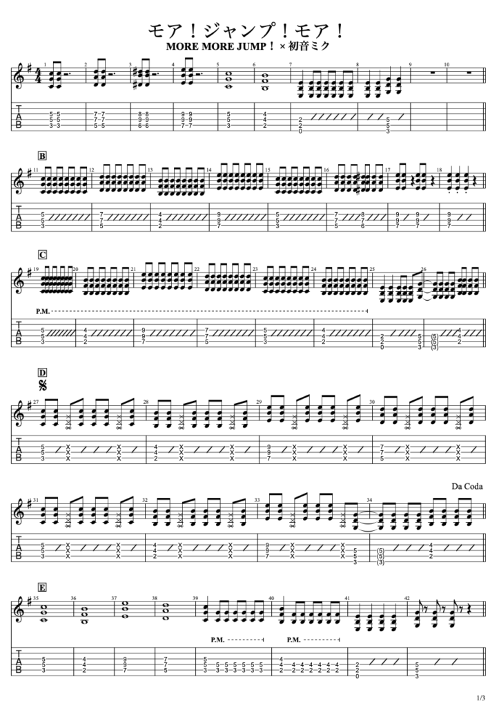 モア!ジャンプ!モア!ギターTAB譜 / MORE MORE JUMP! × 初音ミク