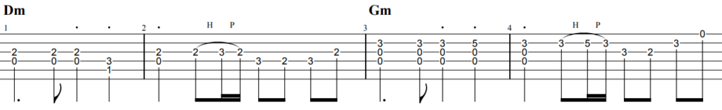 ピックを使用した演奏でアレンジしました。前半4小節はスタッカートを意識して演奏しましょう。ハンマリング・プリングが数カ所出てきますが3連符で弾く箇所などリズムに注意して弾きましょう。