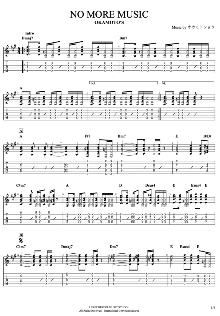 NO MORE MUSICギターTAB譜/OKAMOTO’S