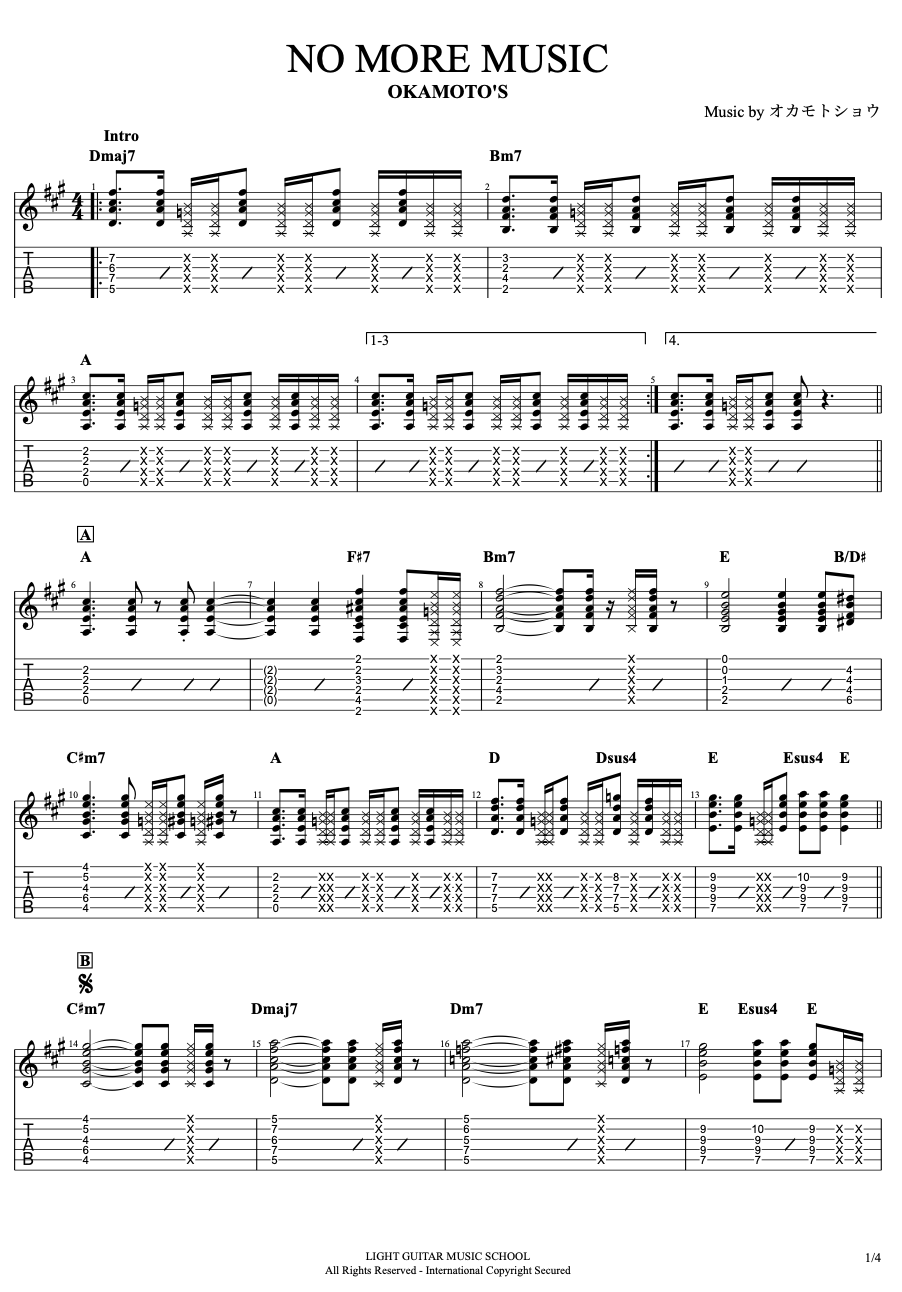 NO MORE MUSICギターTAB譜/OKAMOTO’S