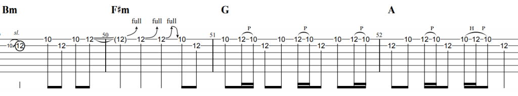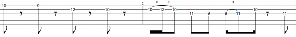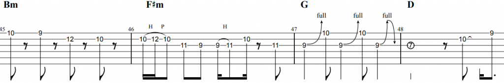 イントロ休符をしっかりとりながら演奏しましょう。またハンマリング・プリングもしっかりリリズミカルにリズミカルに演奏しましょう。