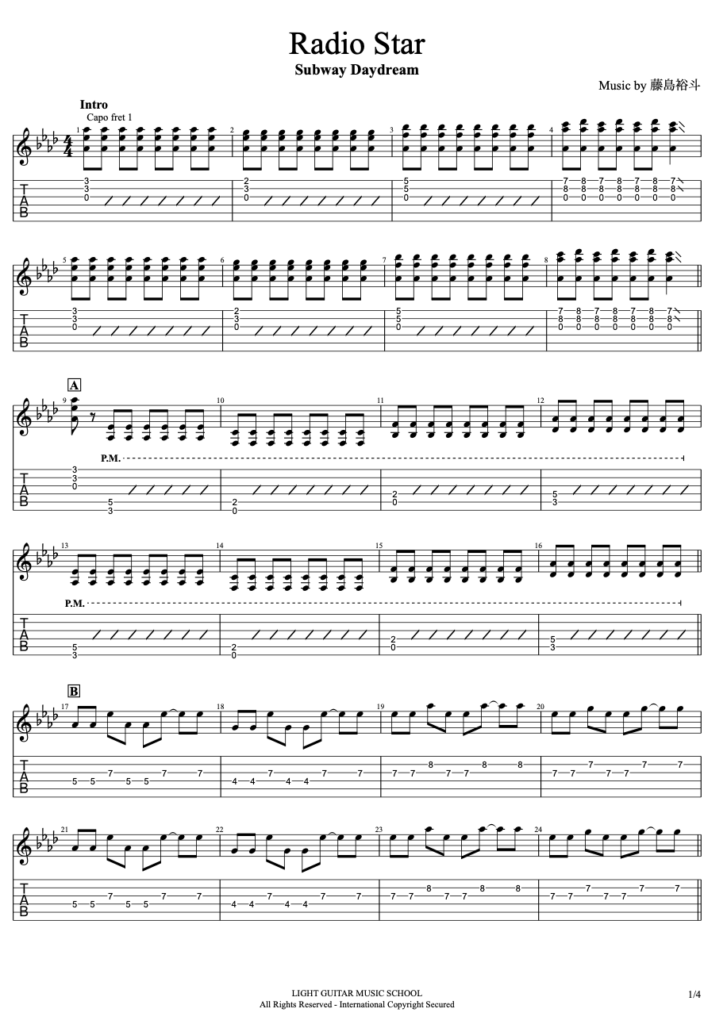 Radio Star/Subway DaydreamのフルコーラスギターTAB譜はこちらから