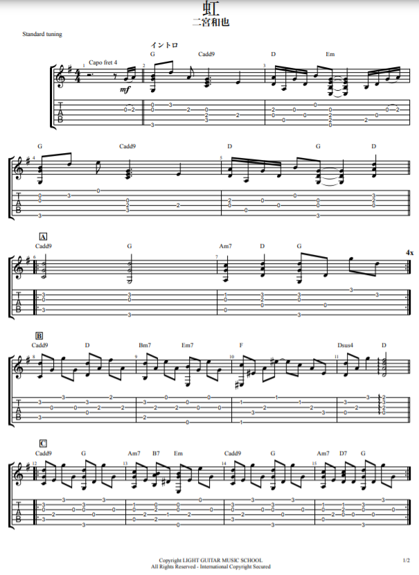 虹/二宮和也(嵐)ギター弾き語り[TAB譜あり]弾き方解説