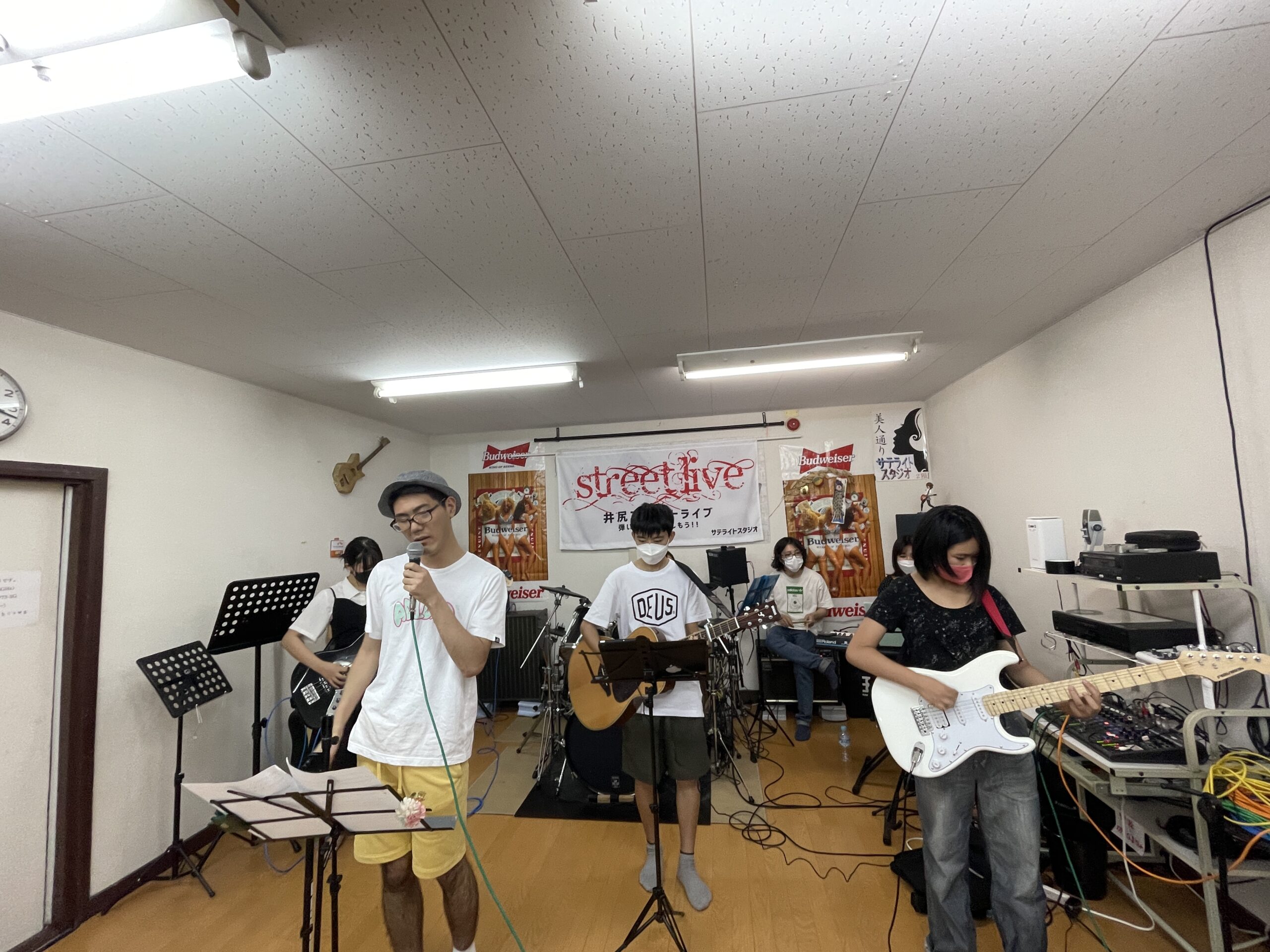 7月18日は30名の生徒の皆さんがボーカル・ギター・ベース・ドラム・キーボードでの生演奏、ギター・キーボードの弾き語り、カラオケ音源に合わせての歌といった形でバリエーション豊富に開催します。