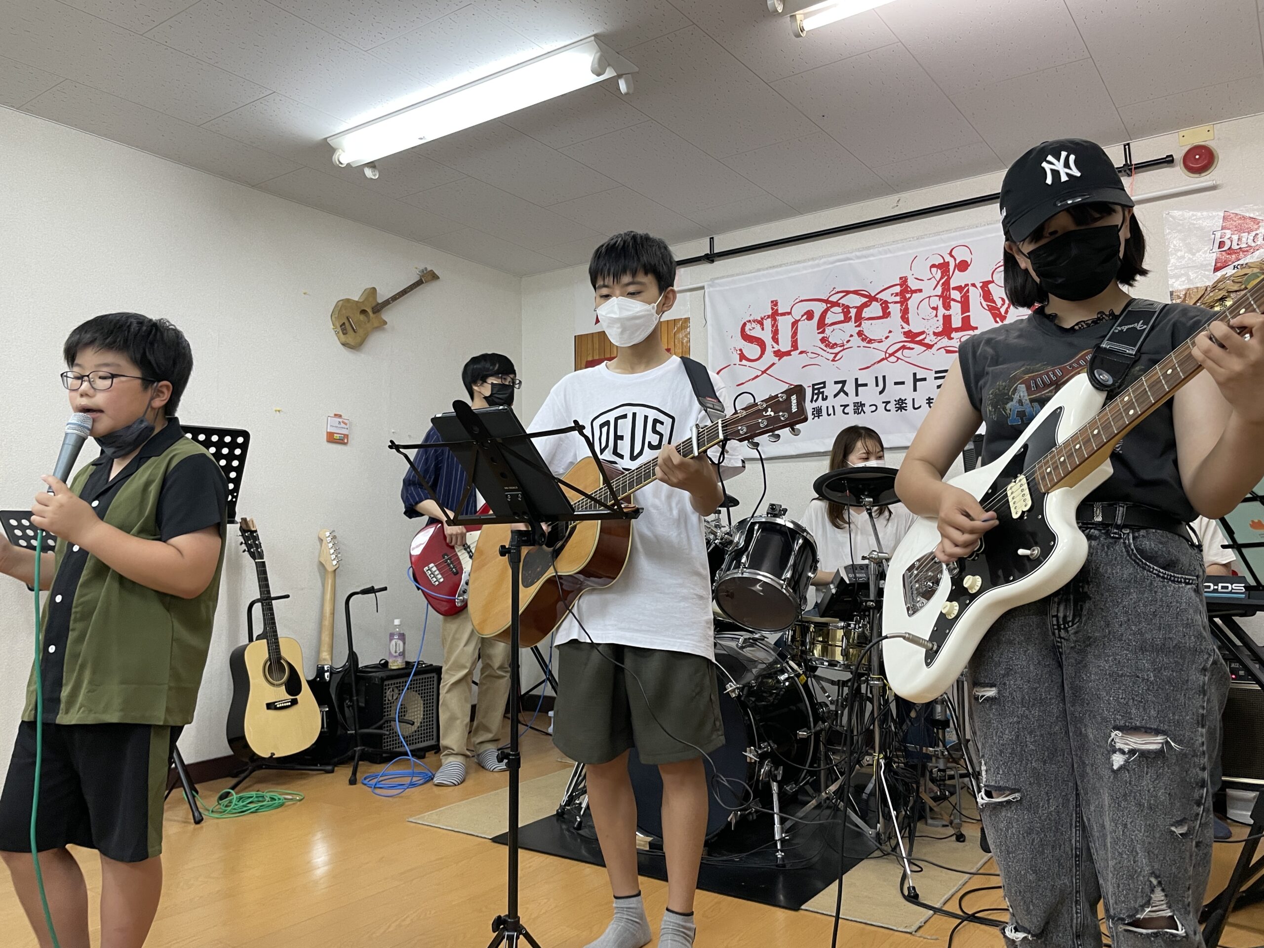 リハーサルは一組ずつリハーサルを順次行いました。やはりバンド練習は繰り返すほどにバンド全体の完成度がどんどん高くなっていきますね。メンバーの息が合ってくる感じが客観的に見ていてとても感じれました!この感じは一人の練習や既存の音源に合わせた練習では絶対に掴めない感覚。それを生徒の皆さんも実感できていたようでとても意味のある練習となりました!