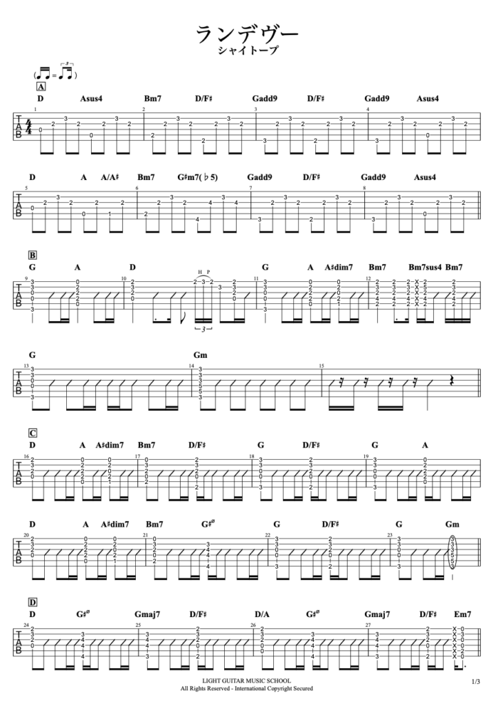 ランデヴー/シャイトープ フルコーラスのギターTAB譜はこちら