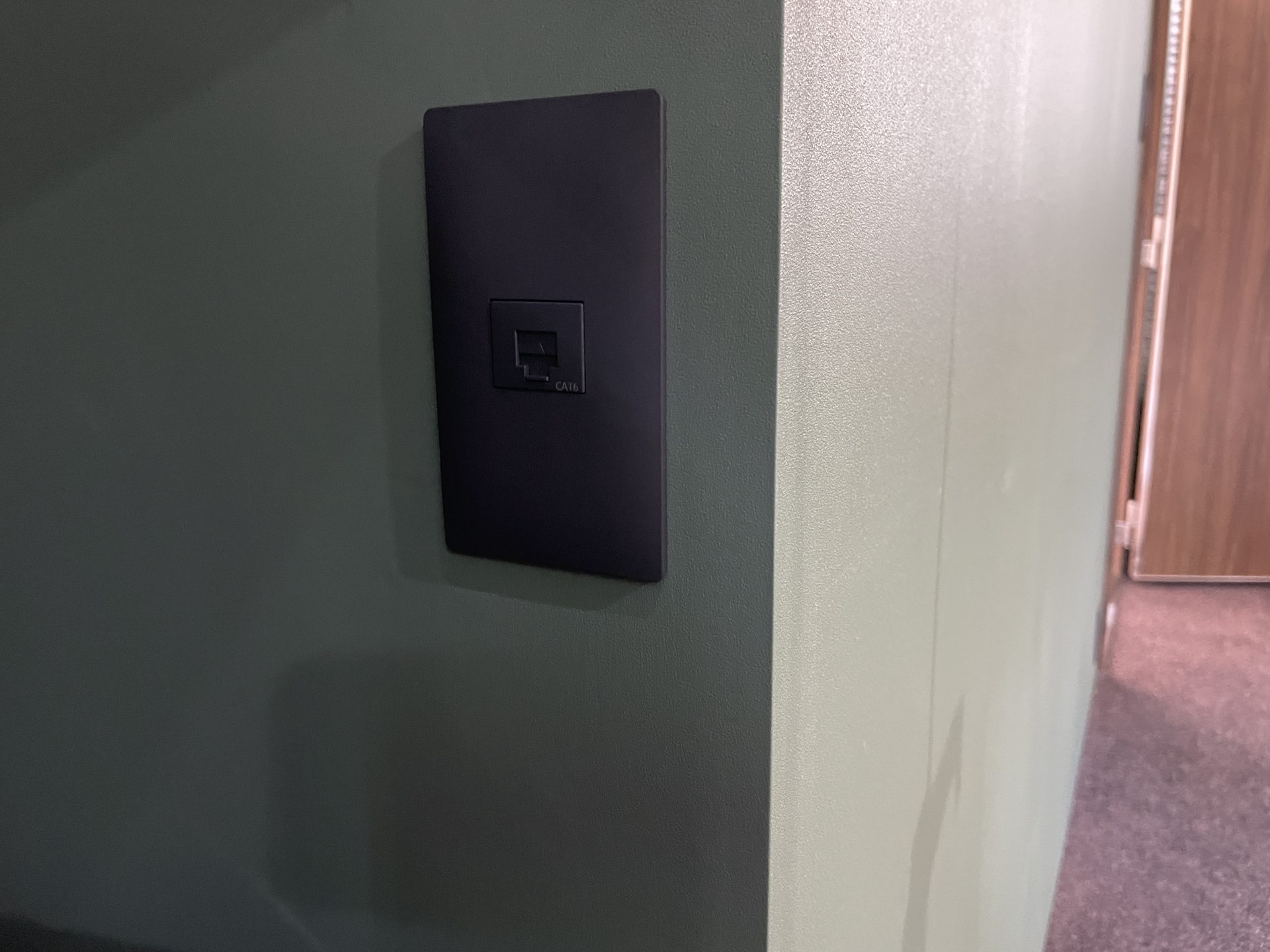 また、換気扇も防音対応の換気扇(大建工業換気扇防音フード21型【SB0405-21】)を設置。この換気扇が防音用ということでなかなか見た目がゴツイです。なんだかエイリアンみたい。ライブ配信など、安定したネット環境が使えるように有線LANも設置。