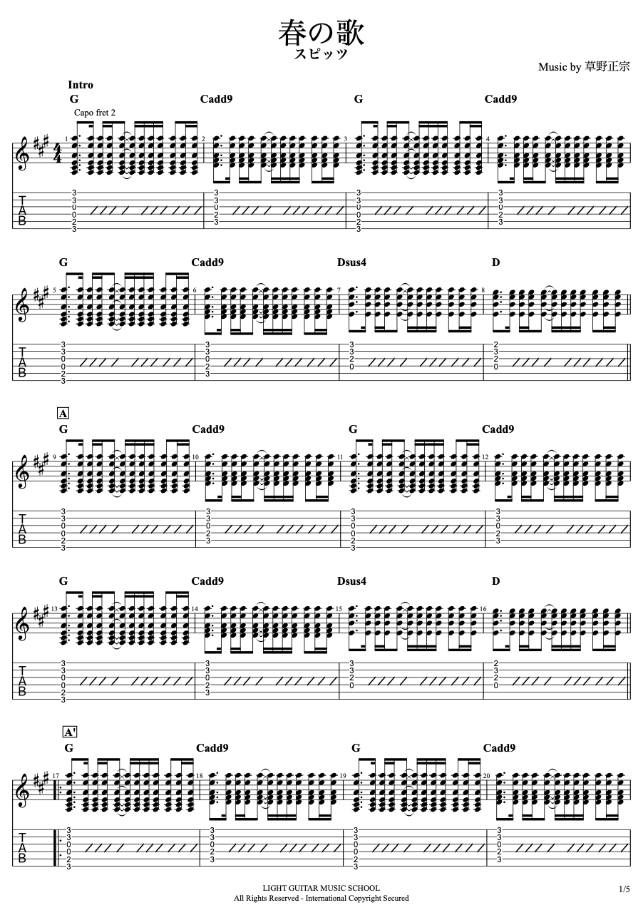 春の歌/スピッツ ギターTAB譜/コード・歌詞