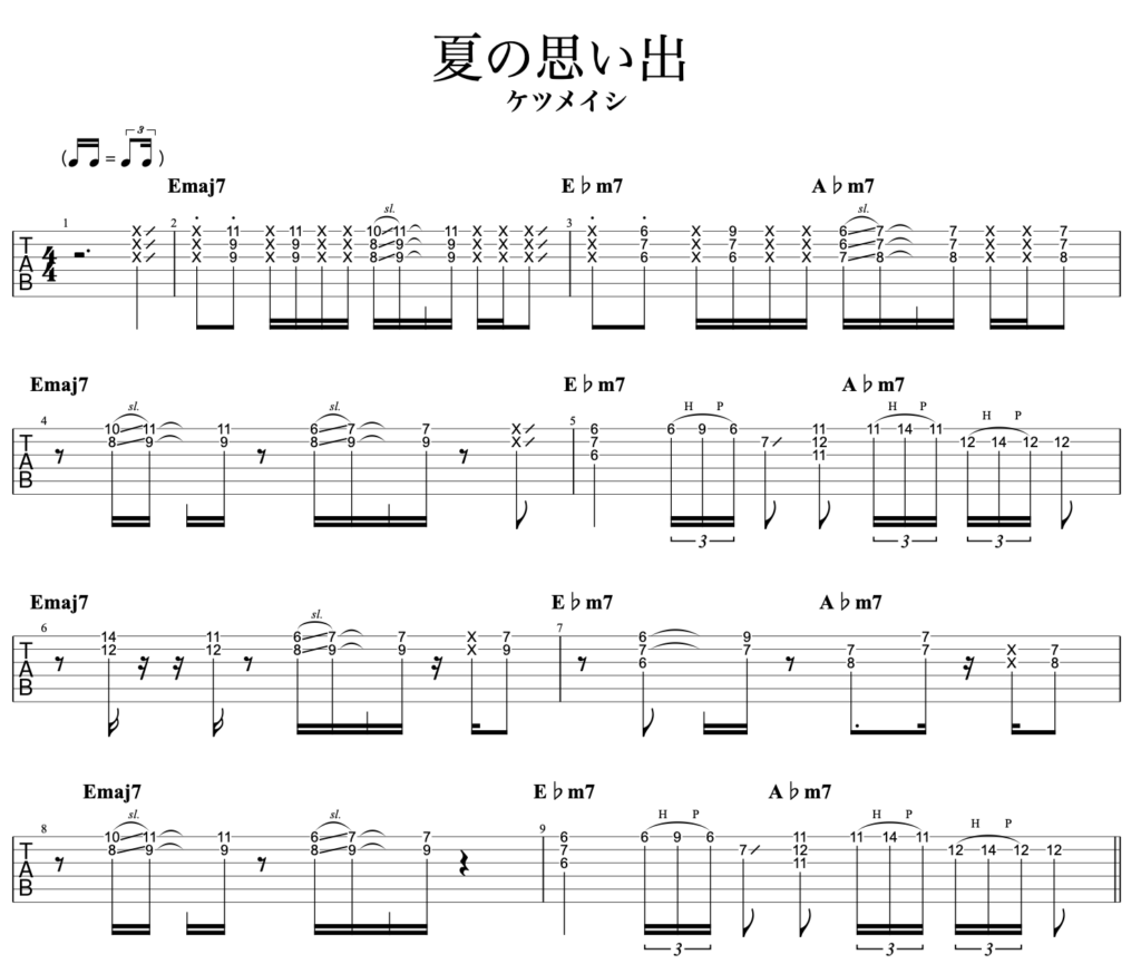 今回は夏の思い出/ケツメイシのイントロのおしゃれなギターカッティングフレーズをTAB譜連動で練習ができます。是非、練習してみてください!