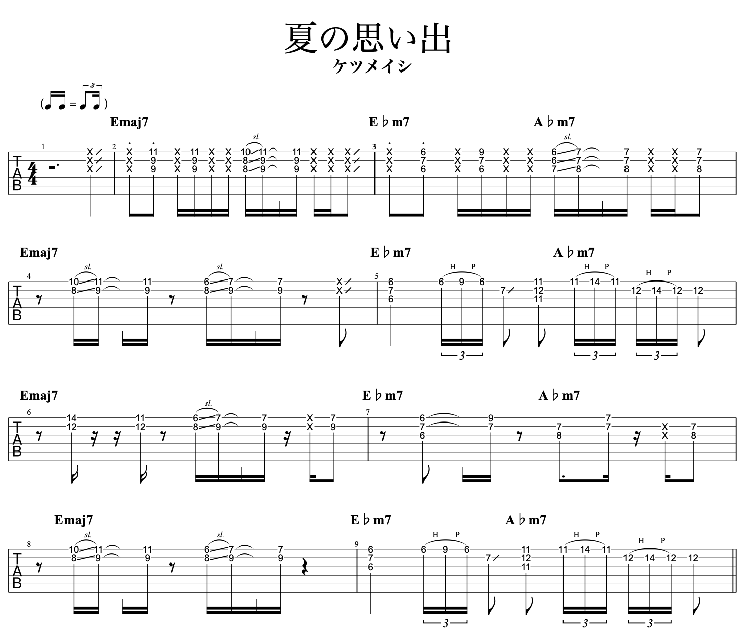 今回は夏の思い出/ケツメイシのイントロのおしゃれなギターカッティングフレーズをTAB譜連動で練習ができます。是非、練習してみてください!