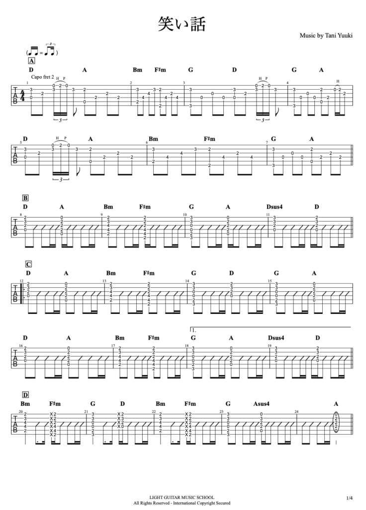 笑い話/Tani YuukiのフルコーラスのギターTAB譜をみたい方はこちらからダウンロードできます!