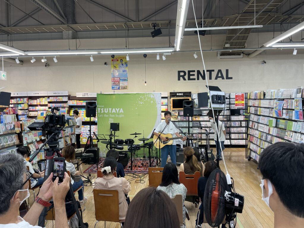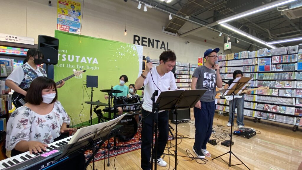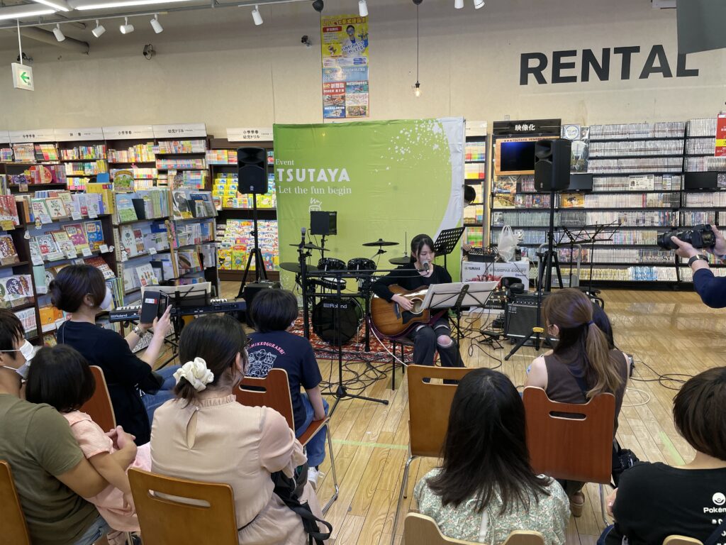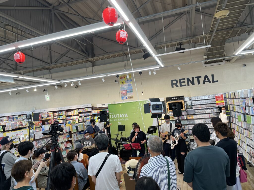 2022年7月18日(月)の海の日。TSUTAYA久留米上津店にてインストアライブを行いました!3連休の最終日たくさんの方が見に来られて今回もとても盛り上がりました!!前回は福岡市東区和白となかなか遠方だったのですが(それはそれで遠征気分で楽しかったです)、今回は久留米市ということでうちの音楽教室からも近い距離にあるところでの開催でした。