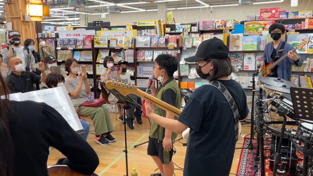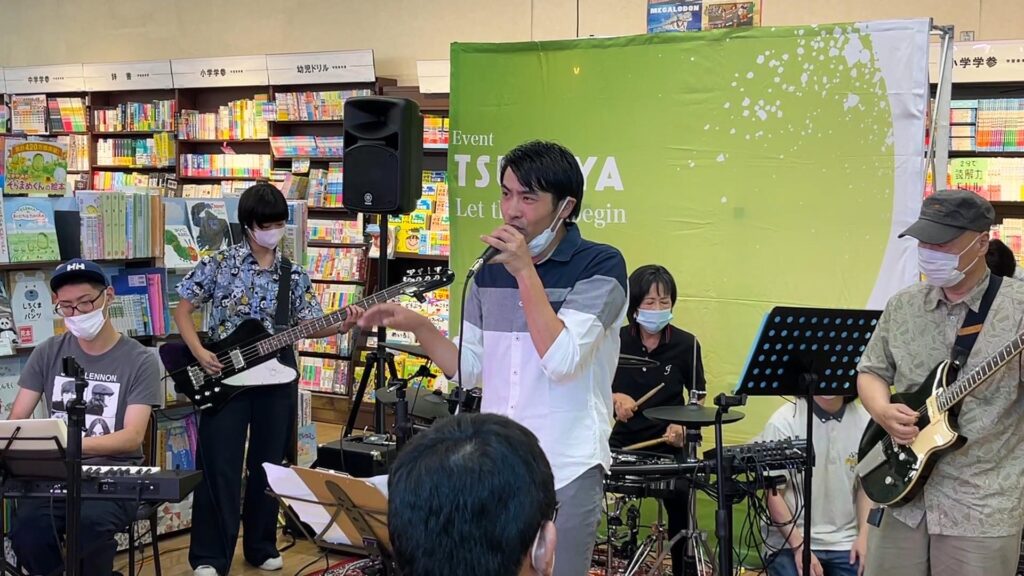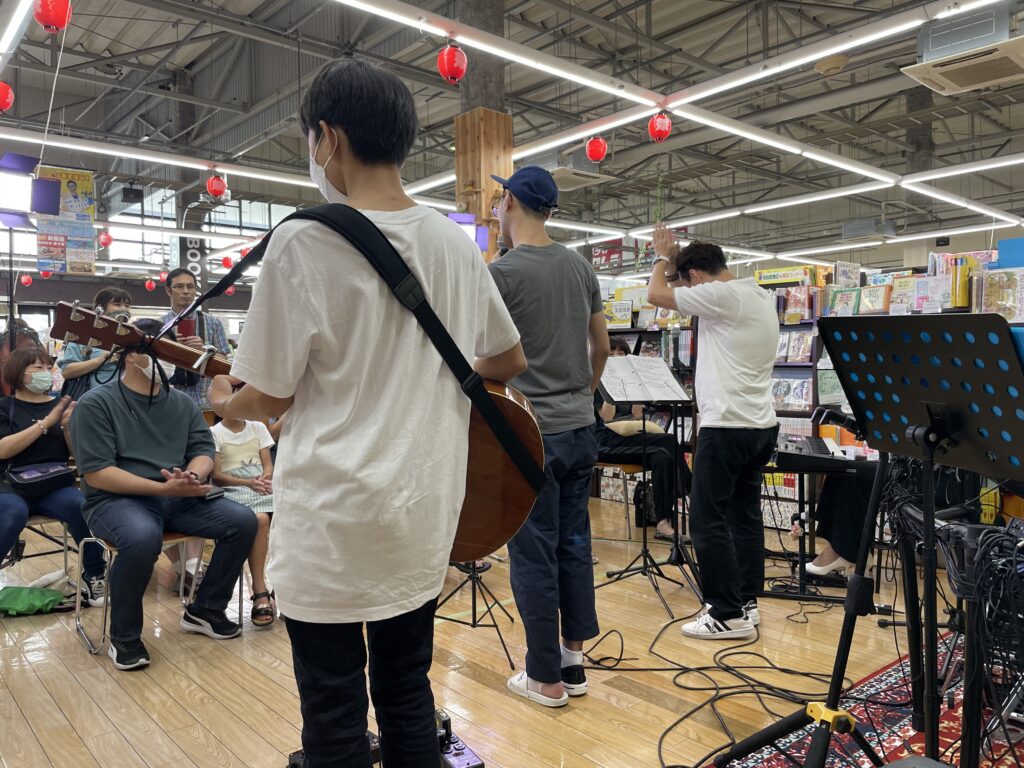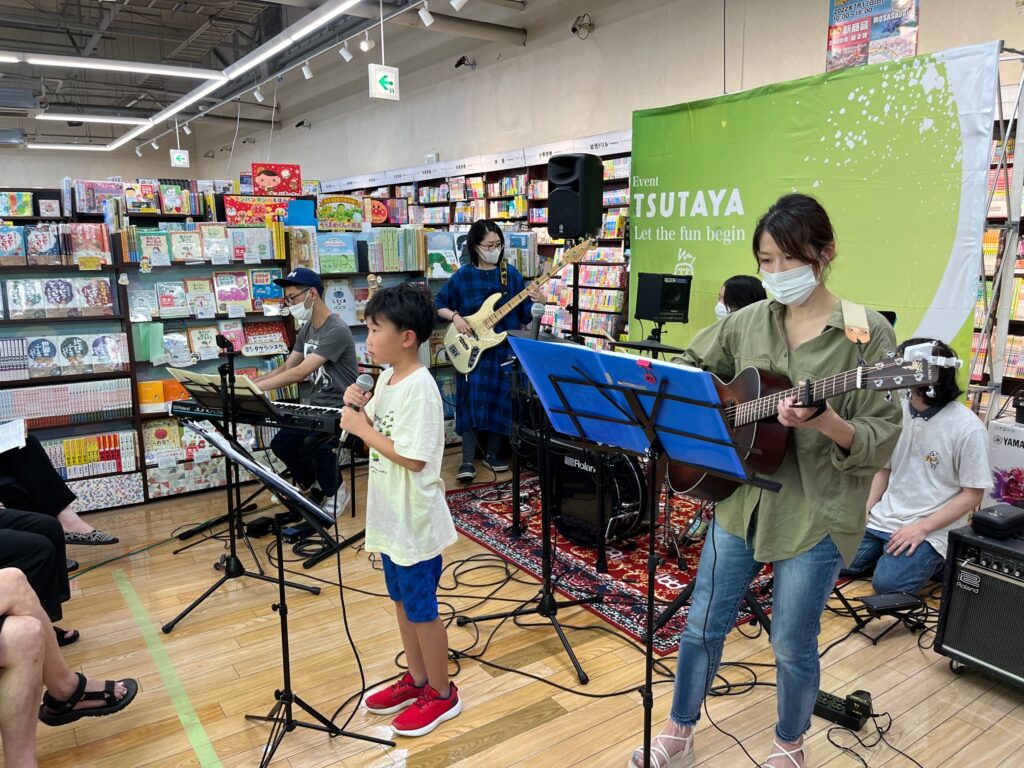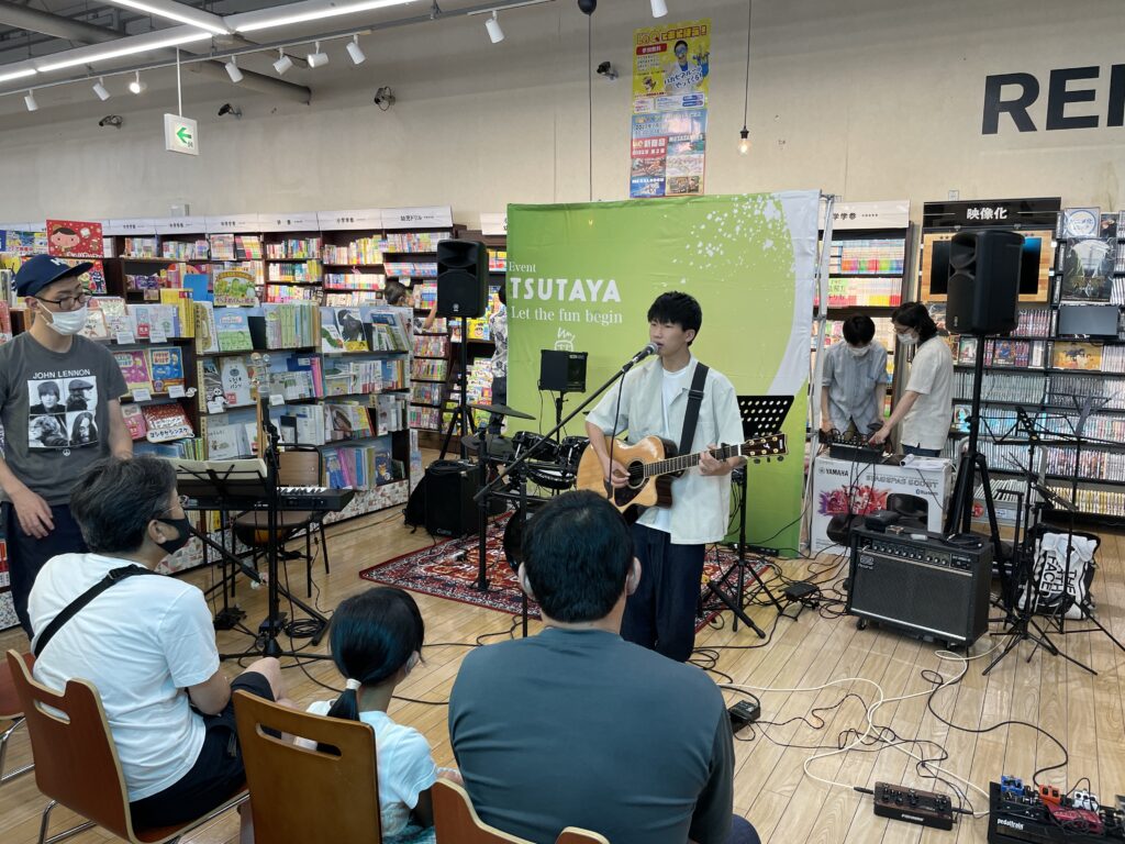 2022年7月18日(月)の海の日。TSUTAYA久留米上津店にてインストアライブを行いました!3連休の最終日たくさんの方が見に来られて今回もとても盛り上がりました!!前回は福岡市東区和白となかなか遠方だったのですが(それはそれで遠征気分で楽しかったです)、今回は久留米市ということでうちの音楽教室からも近い距離にあるところでの開催でした。