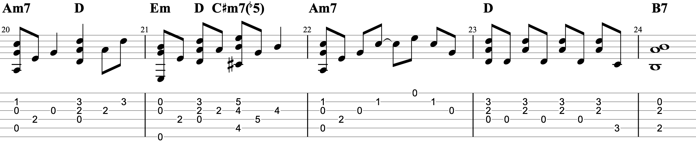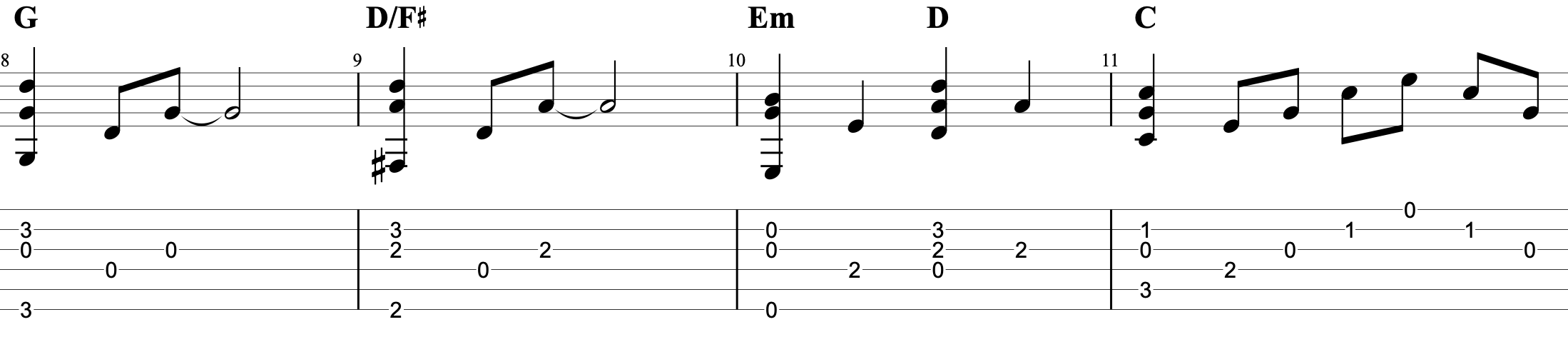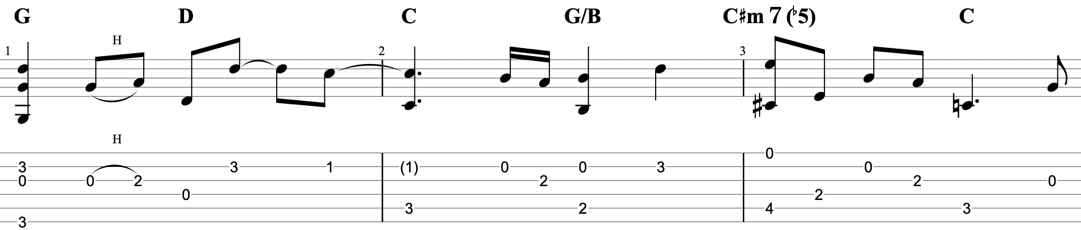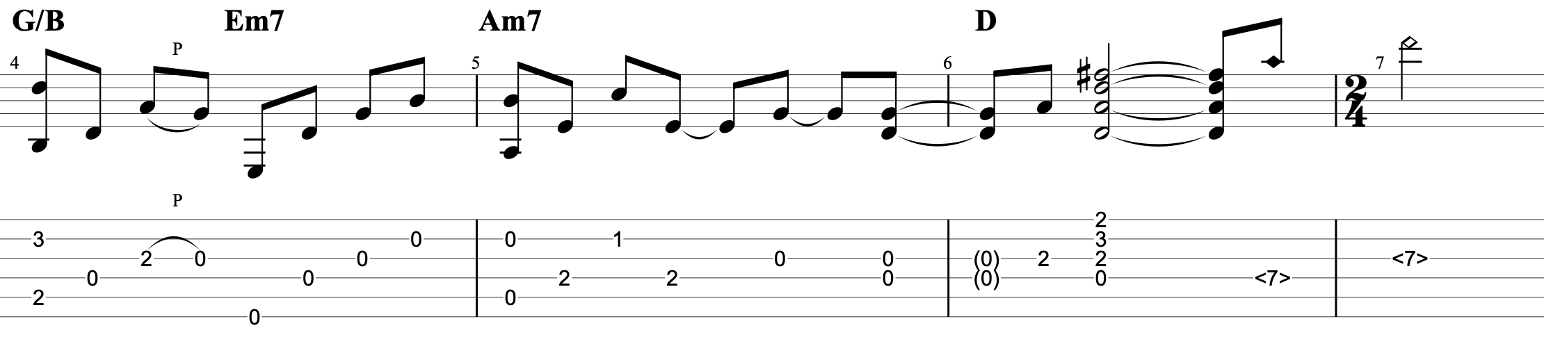 イントロ・間奏・エンディングはソロギター的にアレンジしています。ハンマリングやプリングの発音がしっかりされるように演奏しましょう。ロングトーンやシンコペーションなどでリズムが突っ込まないように注意しましょう。エンディングのC-Dのコード進行のフレーズは3弦開放をうまく活用したフレージングにしました。全体的にバラードの曲調なので指弾きのピッキングを力みすぎず抑揚をつけて演奏すると雰囲気が出てくると思います。