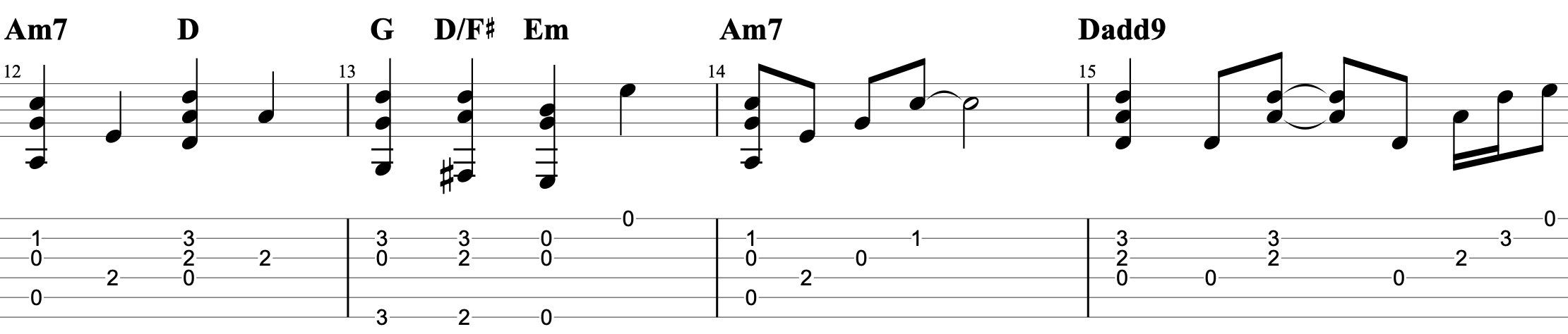 あなたがいることで/Uru ギターTAB譜・コード ワンコーラス