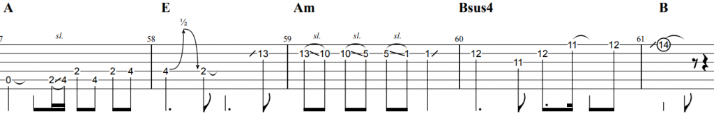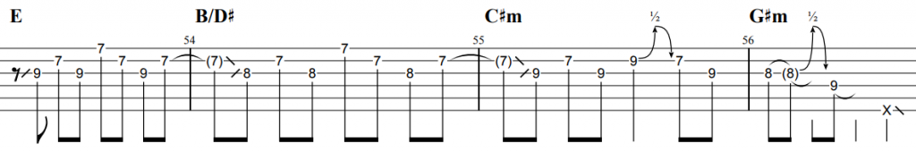 アルペジオ今回のデモンストレーションと解説では主にピックと指を併用した弾き方での解説となっています。(ピックでのアルペジオのパターンも簡単に解説しています)このフレーズは弦移動が大きいアルペジオフレーズとなっているので指も併用することで効率よく弾くことが可能となります。またミスピッキングを減らす事もできますのでこの弾き方ができると他でも応用が利きますので使い分けができるという意味でこの弾き方もできるようにしておくことはおすすめします。注意点はピックと指弾きの音量のバランスを意識して演奏するようにしましょう。